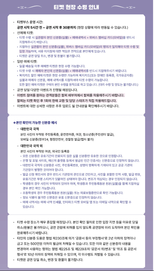 - 촬영 금지: 공연장 내 사진/동영상 촬영 절대 금지