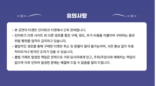 - 예매 연습 필수: 실제 예매 전 인터파크 가상 예매 진행해보기